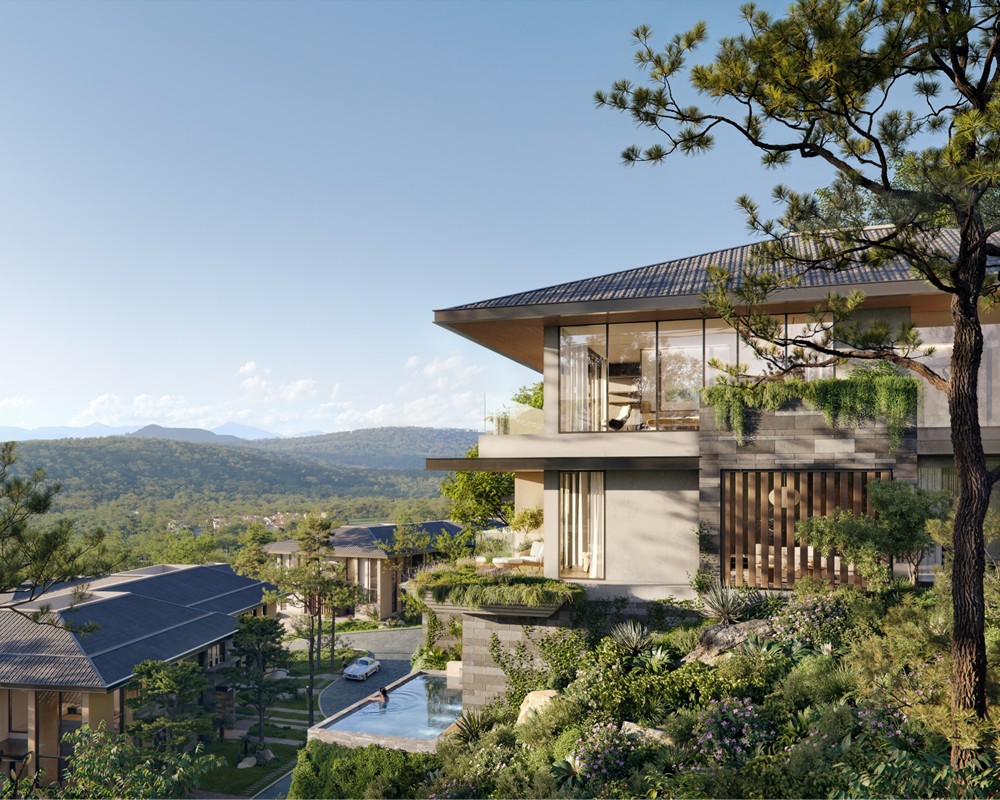 Bộ sưu tập Camellia Residences đạt đến chuẩn mực của ngôn ngữ kiến trúc đương đại, cùng chung mạch nguồn thẩm mỹ với InterContinental Thanh Xuan Valley Resort.